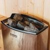 Klasikinė pirties krosnelė su mechaniniu valdymu, kuris sumontuotas viršutinėje jos dalyje. Krosnelė yra pakabinama ant sienos. Išorės apdaila iš nerūdijančio plieno. Krosnelėje telpa 25kg akmenų.