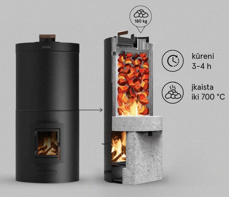 Cilindro forma užtikrina optimaliausią šilumos sklaidą ir dūmų cirkuliaciją krosnyje.