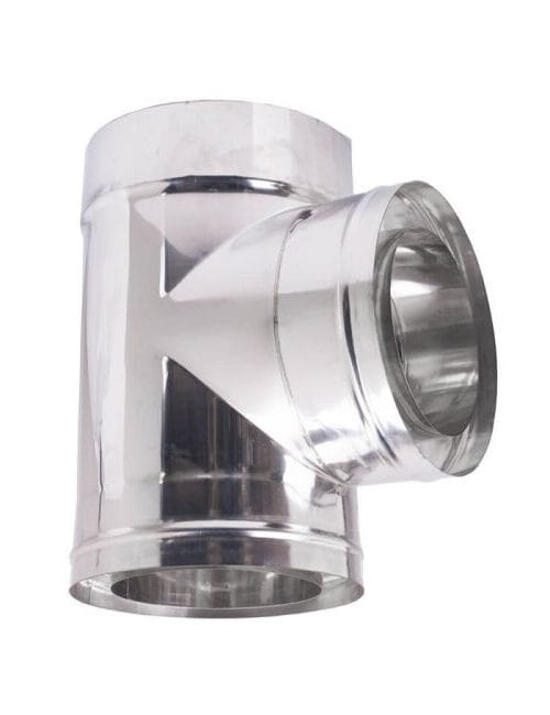 Nerūdijančio plieno šiltinto dūmtraukio trišakis, vidinis diametras – 115mm, išorinis diametras – 200mm, plieno storis 0,6mm,