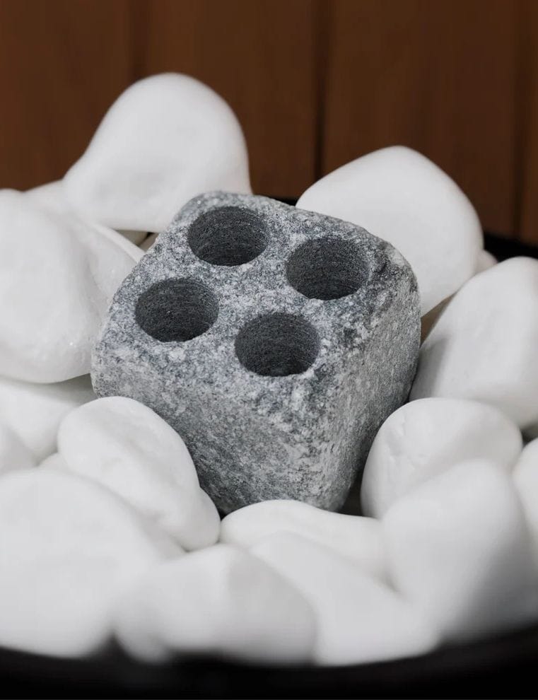 Akmeninis indelis Höyrykivet, skirtas pirčių aromatams ir vandeniui garinti.