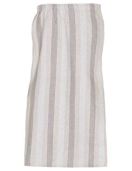 Moteriška prijuostė  – tai patogus ir lengvai naudojamas aksesuaras pirtims, SPA, baseinui ar paplūdimiui. Lipni užsegimo juosta (Velcro) leidžia jį lengvai užsegti ir laisvai judėti.